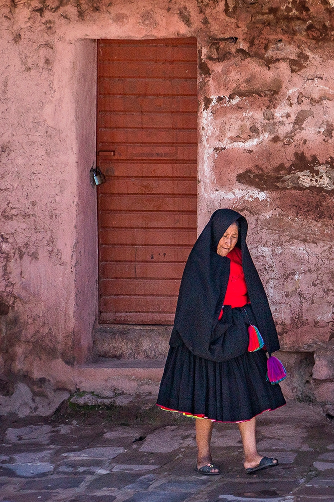 그런데 타킬레의 여성들은 채색된 것이 아닌 검은색의 넓은 숄을 머리부터 등 뒤로 길게 내려쓰고 다녔다. 검은 옷에 검은 숄을 머리에 쓴 여성들이 마을길을 가는 것을 보고 있으면 이곳이 수녀원이 아닌가 착각이 들 정도이다.