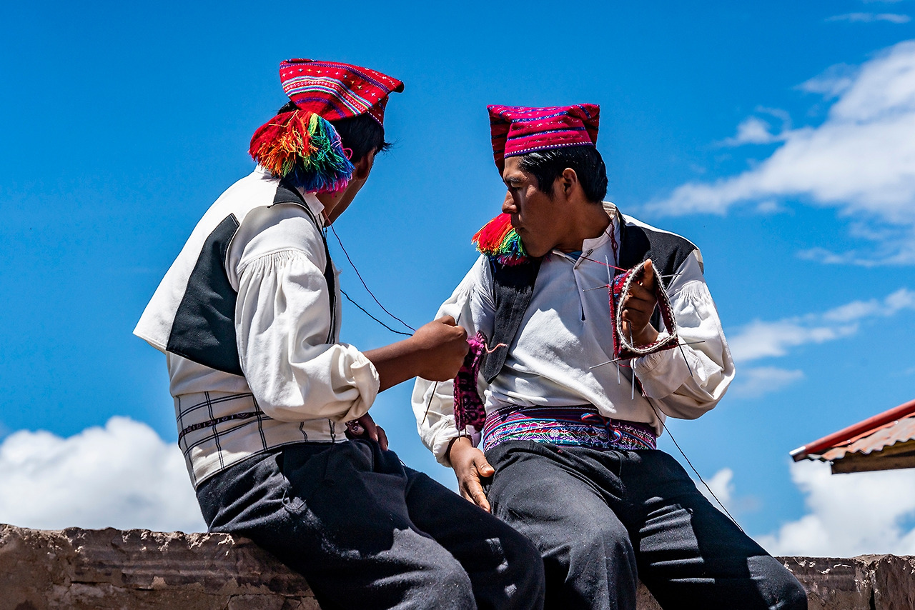 타킬레에서 흥미롭게 보이는 것 중 하나는 뜨개질하는 남자들의 모습이다. 이곳의 남자들은 아무데서나 뜨개질을 하고 있었는데 이 섬에서 뜨개질은 남자들이 하는 일이라고 한다. 여자들은 양털을 염색하고 실을 뽑는 일을 하며 남자들과 함께 베틀질을 하기도 하지만 뜨개질을 하지는 않는다.