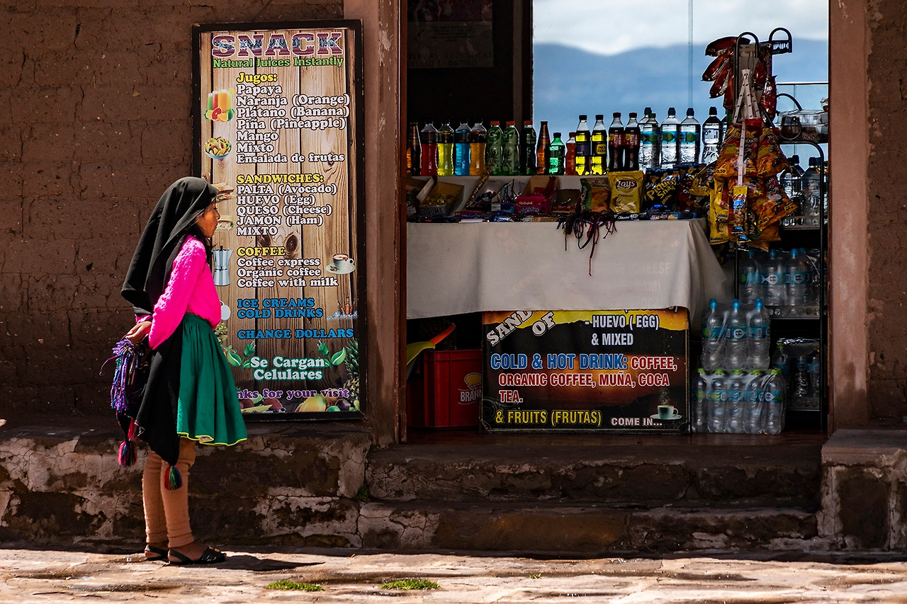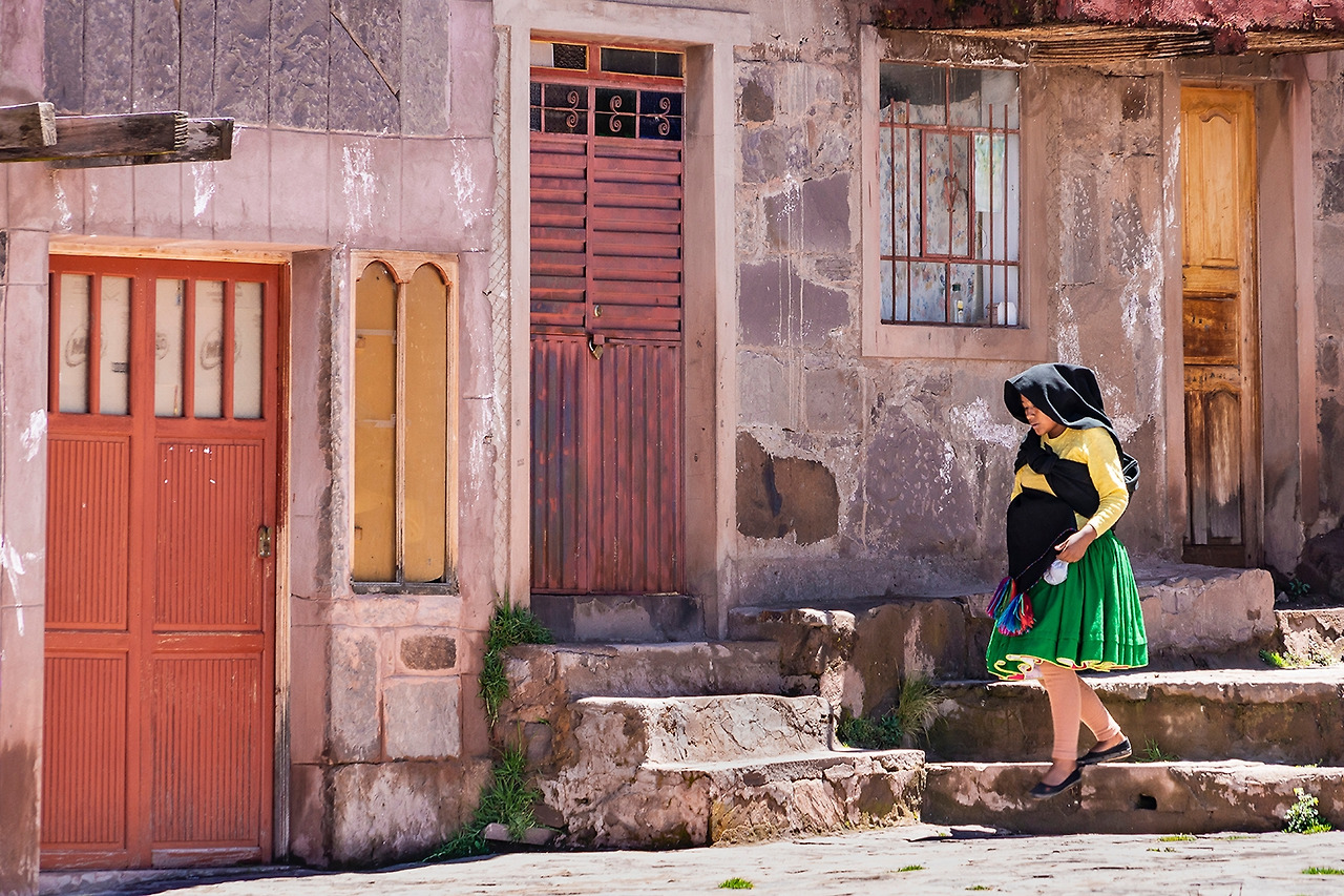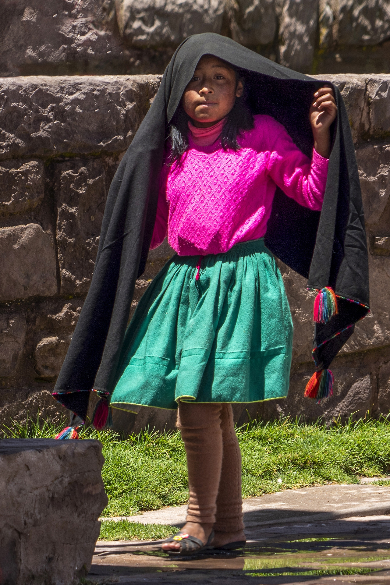 푸노는 물론 페루의 이곳저곳에서 본 전통 복식의 여성들은 모두 다양한 원색조의 담요 같은 숄을 어깨에 둘러메고 다녔다. 그것은 아기를 업는 데 사용되기도 하고 물건을 넣는 백팩같이 사용되기도 한다.