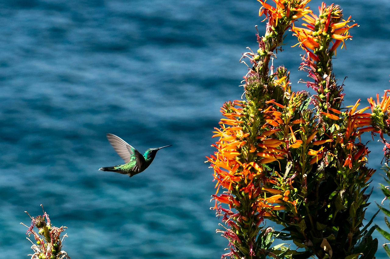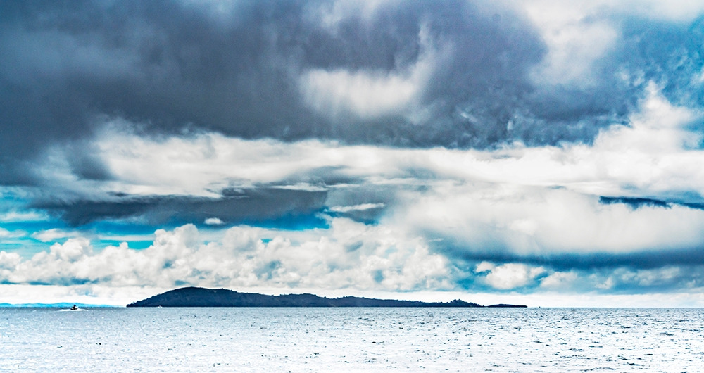 우로스에서 타킬레 섬을 향해 출발한 배가 토토라 군락지를 벗어나자 푸노 만의 양쪽의 두 반도 사이로 만의 출구인 카파치아 해협이 보였다.