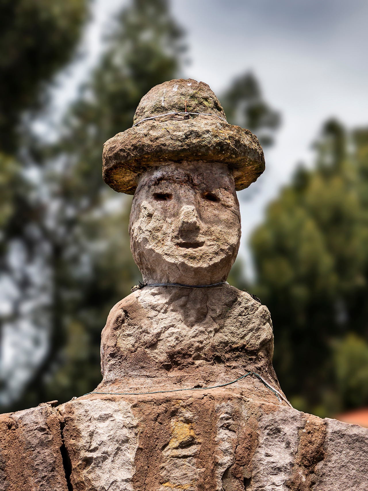 섬에 들어가면 첫 번째로 눈에 들어오는 것이 돌로 만든 아치형 문이다. 아치형 문에서 가장 눈길을 끄는 것은 문 위에 앉아 있는 돌사람이다. 둥근 테의 모자를 쓰고 있는 이 상은 둥근 아치 위에도 있고 또 문의 양쪽 기둥 위에도 있다. 마치 돌하르방이 돌문 위에 앉아 있는 듯하다.