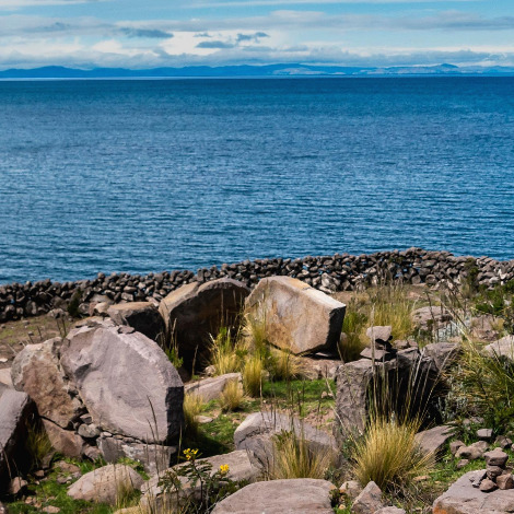 섬에는 잉카 시대의 유적을 비롯해서 잉카 이전의 유적들도 있다고 하는데 이번에는 한 군데도 찾아가지 못했다. 그런데 섬을 떠나기 위해 또 다른 선착장으로 이동을 하면서 길 가에서 매우 친숙한 돌의 구조물이 눈에 들어왔다. 판석 모양으로 잘라진 넙적한 돌들을 네모나게 둘러 세운 것인데 일부의 벽석은 없어진 듯했다.