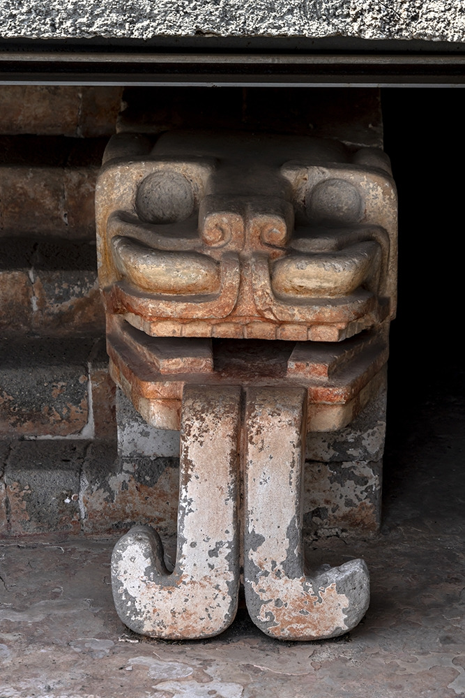 죽은 자의 길 남쪽 건물군에 있는 깃털 달린 뱀의 머리 조각