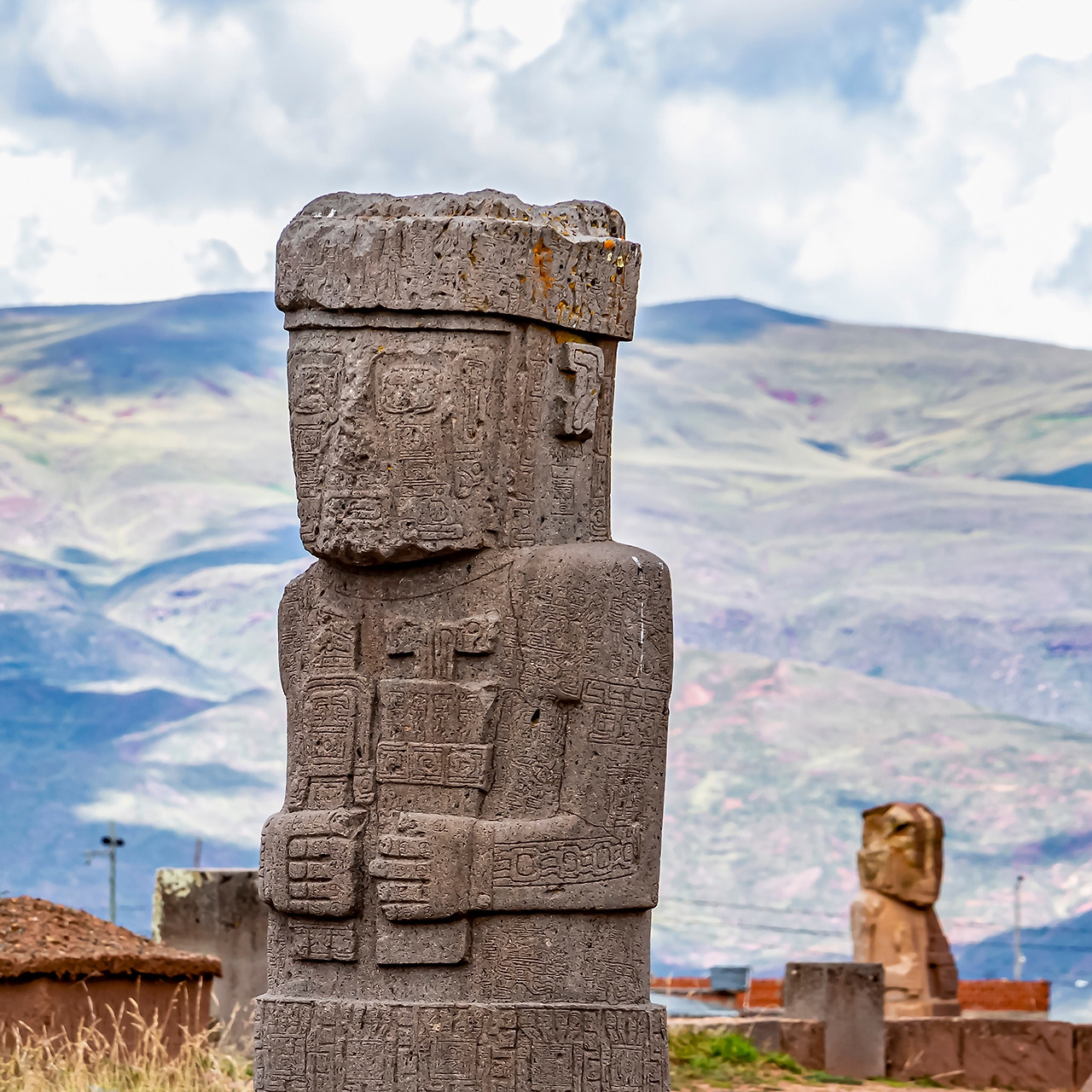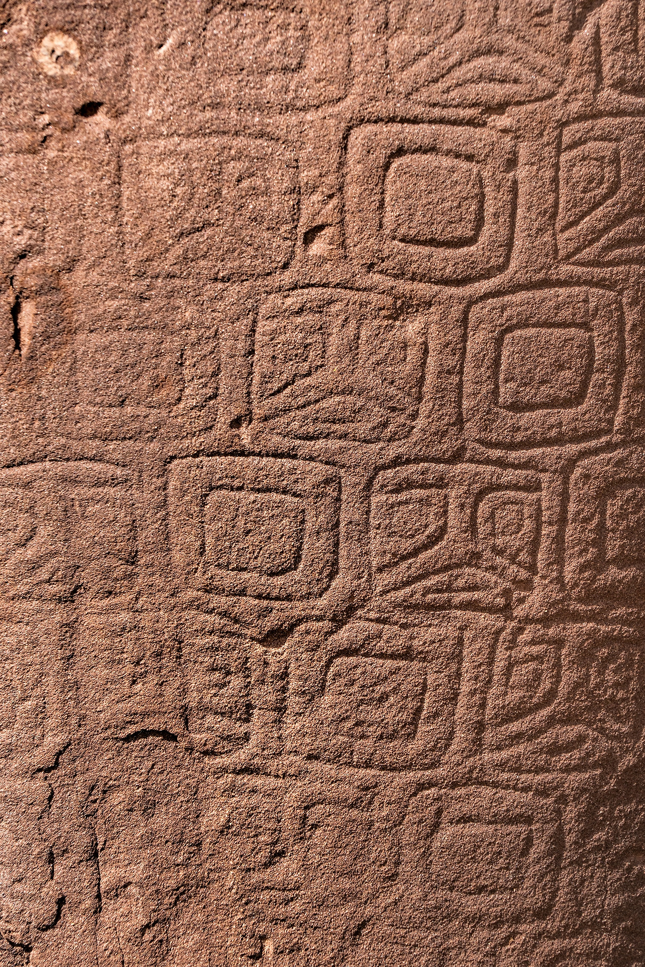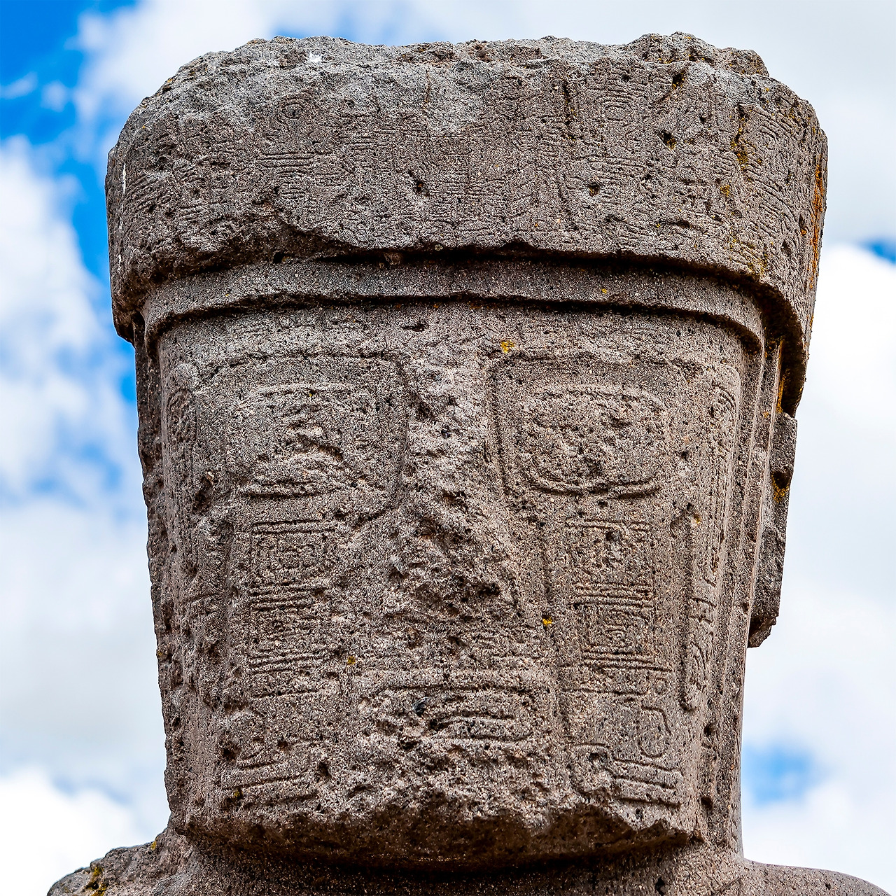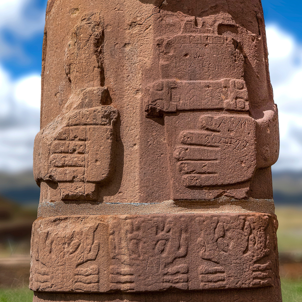 다리를 감싼 치마 같은 옷에는 폰세 석상과 마찬가지로 신상의 얼굴을 극도로 간략화한 것과 이중의 사각형 무늬를 반복해서 새겼다. 석상의 세부를 자세히 기록하느라 길고 지루해졌으나 티와나쿠 사람들이 왜 이 석상들을 숭배했는지를 이해하는데 도움이 될까 해서였다. 한편으로는 이런 시시콜콜한 것들을 들여다보는 것이 나의 취미이기도 하니 어쩔 수 없다.