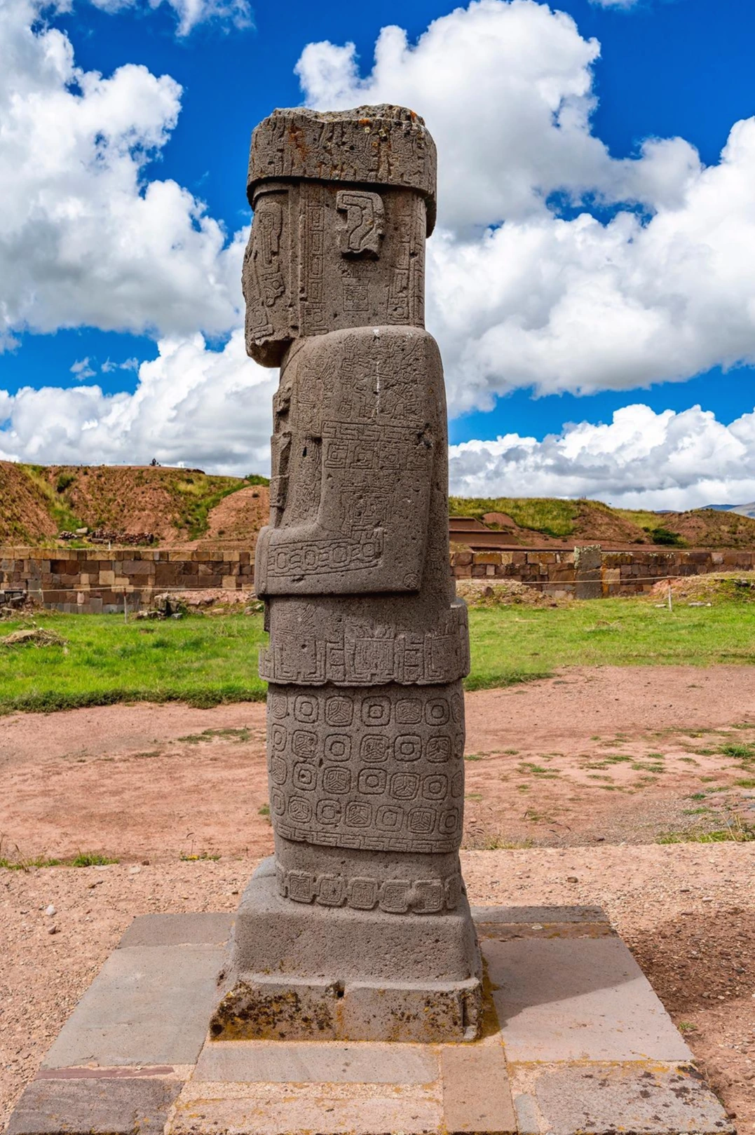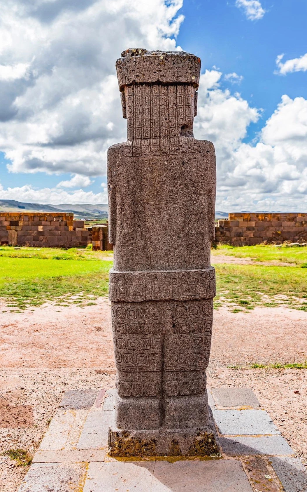석상의 머리에서 발까지 몸 전체에는 여러 가지 도상으로 가득 찼다. 석상의 모습은 사람의 형태로 되어 있으나 아마도 잉카 훨씬 이전부터 이 지역 사람들에게 숭배되고 있던 창조신 비라쿠차나 지팡이 신일 것으로 보고 있다.