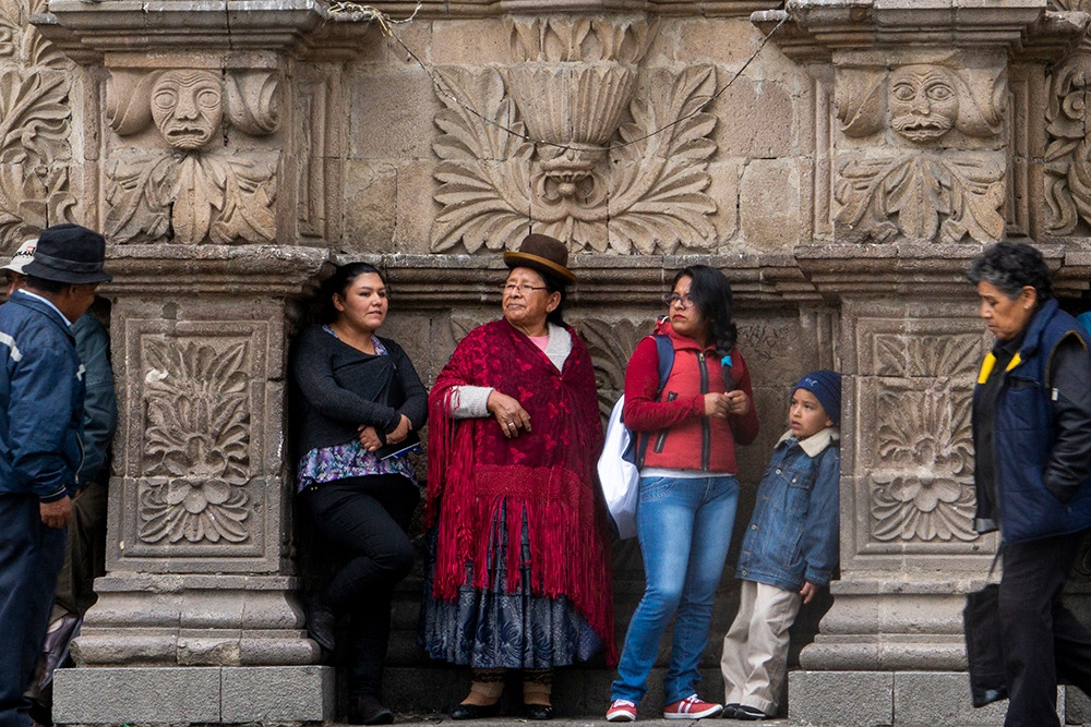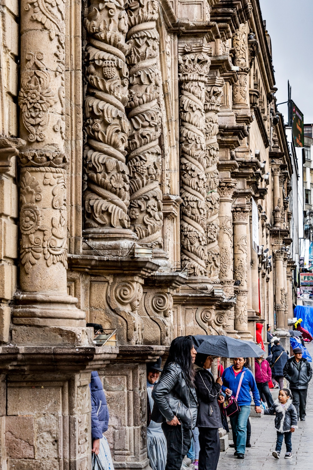 비를 피하는 사람들의 머리 위로 일반 성당 건축에서 볼 수 없는 특이한 얼굴들이 보였다. 이 지역에 조상 대대로 살아온 원주민의 얼굴이다. 코파카바나의 검은 성모에서 보았던 남미 가톨릭의 현지화 정책의 산물이다.