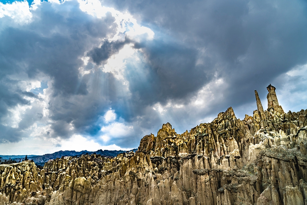이따금씩 구름장 사이로 쏟아지는 빛 줄기가 진흙의 모래탑들을 달인 듯 착각하게 한다.