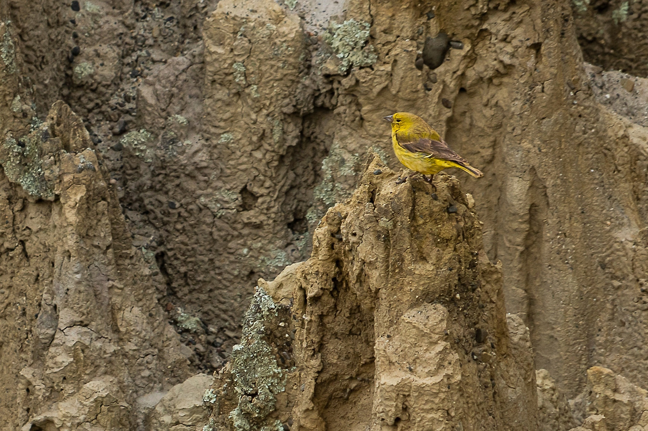 진흙과 모래의 돌기둥 사이로 새들이 날아 다닌다