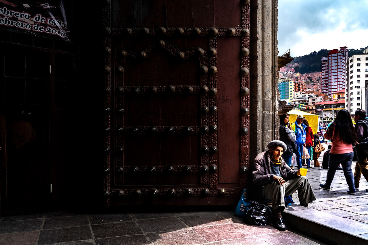 돔의 십자가 뒤로 멀리 함지박 모양의 라파스 변두리 급경사에 지은 집들이 구멍 난 붉은 벽돌을 무질서하게 쌓아 올린 듯 위태롭게 보였다. 그러나 그 벽돌의 구멍마다 라파스의 가난과 힘든 삶들이 콕콕 박혀 있는 듯 했다.