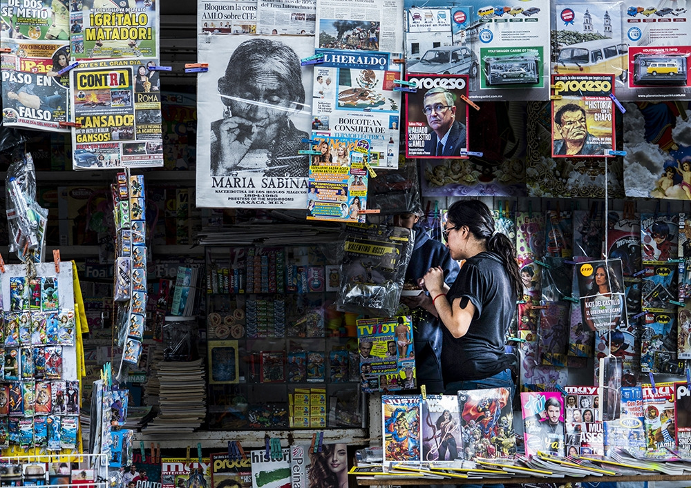 길을 걷다가 보도 한쪽에 설치된 잡지 판매대가 눈에 들어왔다. 각종의 크고 작은 잡지들이 거치대에 가득 전시되어 있고 사람 키보다 약간 높은 천정에는 여러 종류의 포스터들이 걸려 있었다. 그중에 큼직하게 인쇄된 여자의 흑백 사진이 눈에 들어왔다. 마리아 사비나(Maria Sabina)라는 이름이 커다랗게 쓰여 있었다. 여행을 떠나기 전 멕시코에 관한 자료를 인터넷으로 검색하면서 인상 깊게 보았던 그 인물이 와하까 사람이란 것을 길거리 서점에서 알게 되었다.