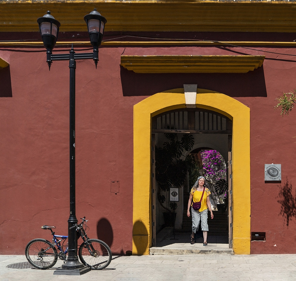 길을 가다가 붉은 벽 가운데에 노란색 테두리를 두른 대문에 눈이 들어왔다. 보도의 끄트머리에 검은 색 가로등이 높직히 서있고 자전거 한대가 기대 있었다. 그 원색의 조화에 끌려 카메라를 꺼내 든 순간 노랜 대문으로 노란색 옷의 여성이 나오고 있었다. 촬영부터 하고 집안으로 들어서니 내가 가보려고 예정했던 알바레스 브라보 사진박물관이었다. 알바레스 브라보는 그의 사진 작품이 유네스코 기록유산에 등재될 만큼 멕시코에서는 물론 세계적으로도 중요한 사진가이다.