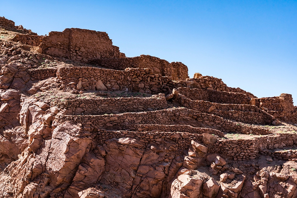 산 경사면에 계단식으로 만들어진 푸카라 요새 유적