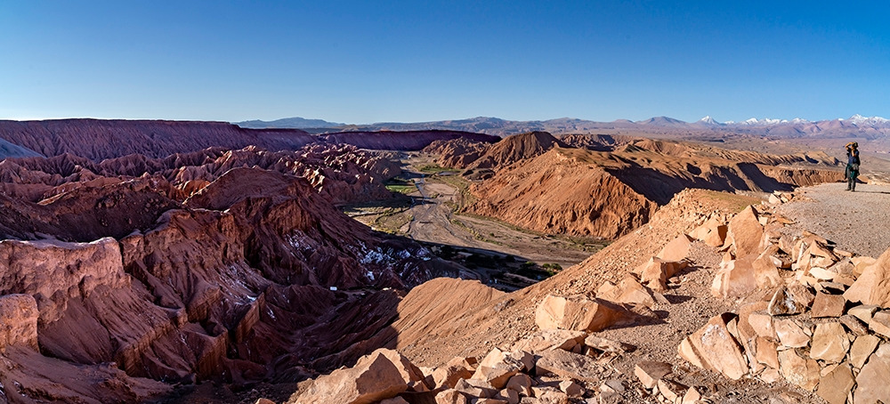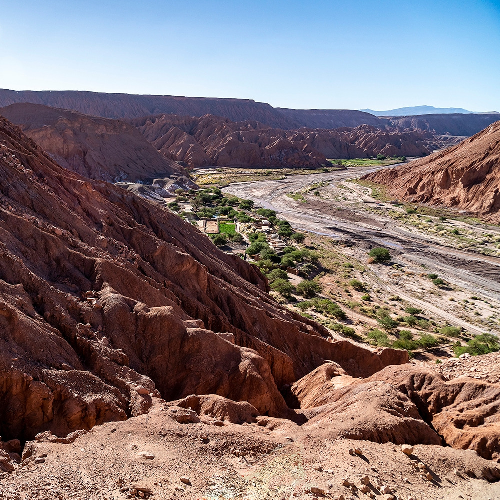 산책길 능선 위에 올라서면 산 페드로 강의 푸른 숲이 한눈에 들어온다. 산 페드로 데 아타카마는 아타카마 사막을 흐르는 산 페드로 강과 그 강으로 만들어진 오아시스에 세워진 마을이다. 산 페드로 강은 이 마을의 젖줄이고 수천 년 아타카마 사막을 살아온 아타카메뇨들의 문화를 만들어낸 어머니 같은 존재이다.