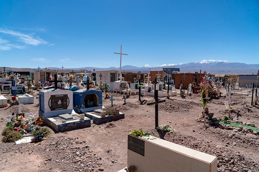 박물관이 아타카마 사막 주민들 조상이 남긴 유품들의 수장고라면 공동묘지는 그 유품을 남긴 사람들이 죽어서 사는 마을이다. 박물관에서 조금 떨어진 곳에 산 페드로 데 아타카마의 공동묘지가 있다. 물론 이 묘지는 박물관 유물들을 남긴 사람들의 묘지는 아니지만 현재 산 페드로 데 아타카마 주민들의 가까운 조상들의 분묘들이다.