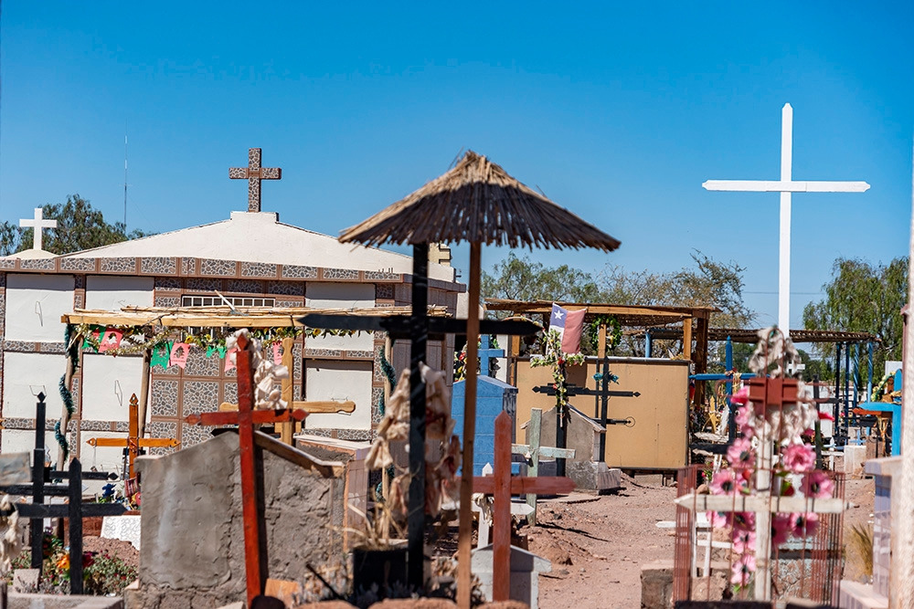 흙벽돌의 토담으로 둘러싸인 공동묘지에는 크고 작은 여러 분묘들이 가득 차 있었다. 지금부터 죽는 사람은 어디 다른 곳으로 묘지를 정해야 할 정도로 빈 공간이 거의 없었다. 아타카마 사막이 아무리 넓어도 이 지역 주민들의 묘지로 쓰는 데는 한계가 있을 것이다. 유럽이나 미국이나 또는 서구의 어떤 곳을 여행하든지 나는 공동묘지를 찾아보곤 한다. 묘지에는 널리 알려진 역사적 인물의 묘도 있고 또 그 지역 사람들이 죽음에 대해 어떤 생각을 해왔는지를 알 수 있기도 하다.