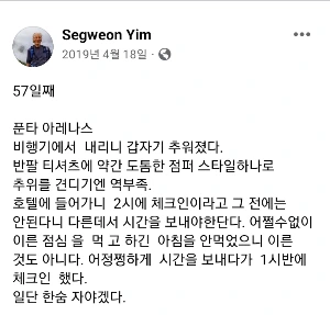 그러나 페이스북 페이지가 아닌 본 페이스북의 내 계정 피드에는 4월 17일에 올린 4월 16일 자와 4월 18일에 올린 4월 17일 자의 일지가 올라 있다. 왜 이 이틀의 일지를 페이스북 페이지 'Dreaming of Moai"에 올리지 않고 곧바로 피드에 올렸는지는 알 수 없다. 어쨌든 허 군은 이 두 포스팅을 보지 못했다.
