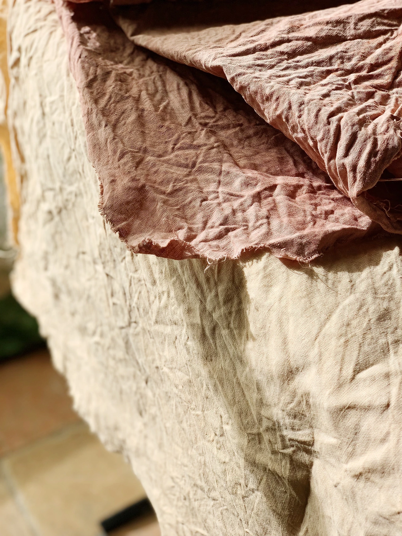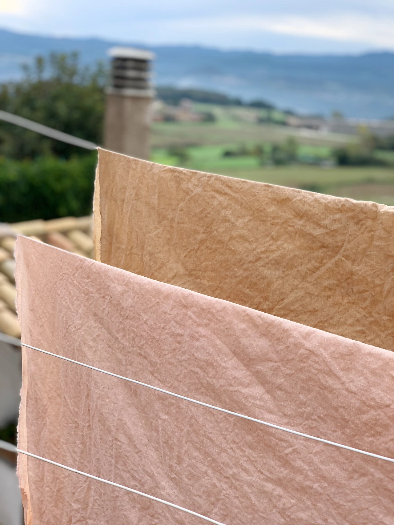 책에서 읽어본 예로는 며칠을 말려야 색이 완벽하게 직물에 흡수가 된다고 했는데, 지내고 있던 동네에 갑자기 비가 오기도 했고 여행의 마지막 날이 다가오기 시작해서 이틀 정도 말리고 다리미로 열심히 다렸습니다. 린넨이라 그런지 쪼글쪼글 해진 것을 친구의 오래된 다리미로 다리느라 엄청 고생했던 기억이...