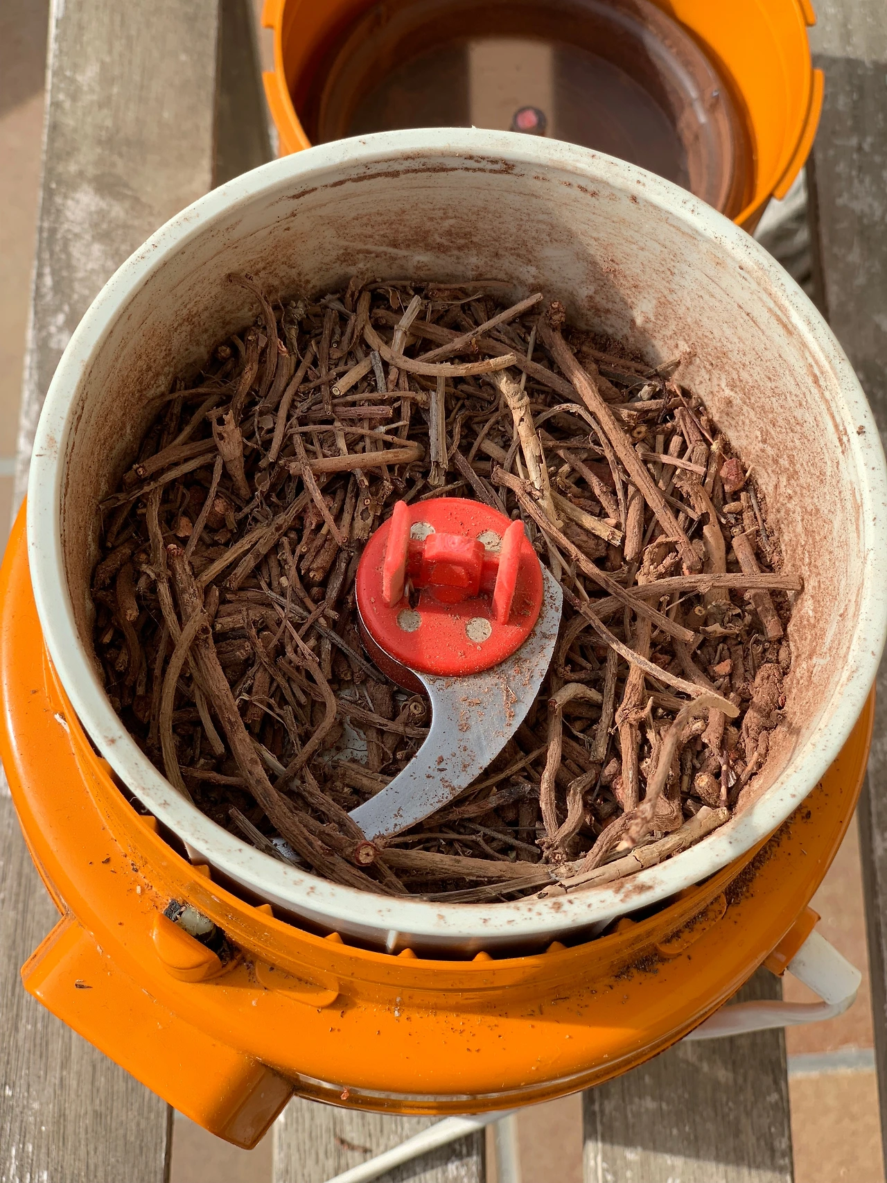 꼭두서니를 손으로 잘게 부서 트린 뒤, 블렌더에 어느 정도 갈아버립니다.