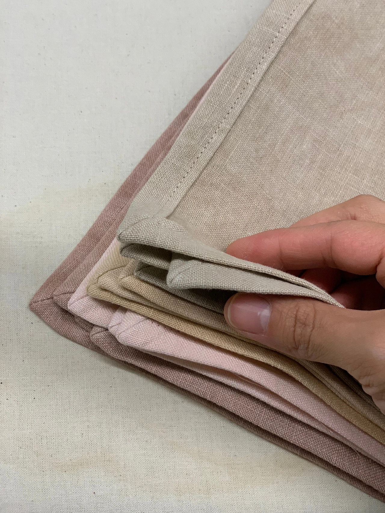 처음에는 염색한 천으로 전공(?)을 살려 애이프런을 만들 생각이었지만, 2.5야드가 살짝 어중간해서 고민을 하다가 냅킨을 만들기로 했습니다.