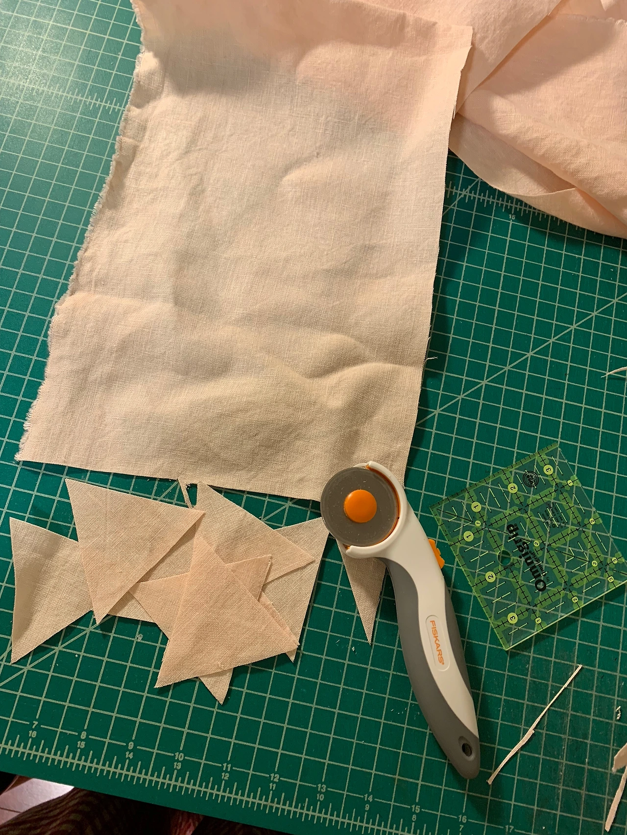 냅킨 만들고 남은 천 조가리들은 고생해서 염색한 천이라 버릴 수도 없고 퀼트를 만들기는 이미 너무 체력이 바닥이 난 상태여서 갈렌드를 만들려고 세모로 잘라냈습니다. 갈렌드 만드는데도 은근히 손 많이 갔네요.