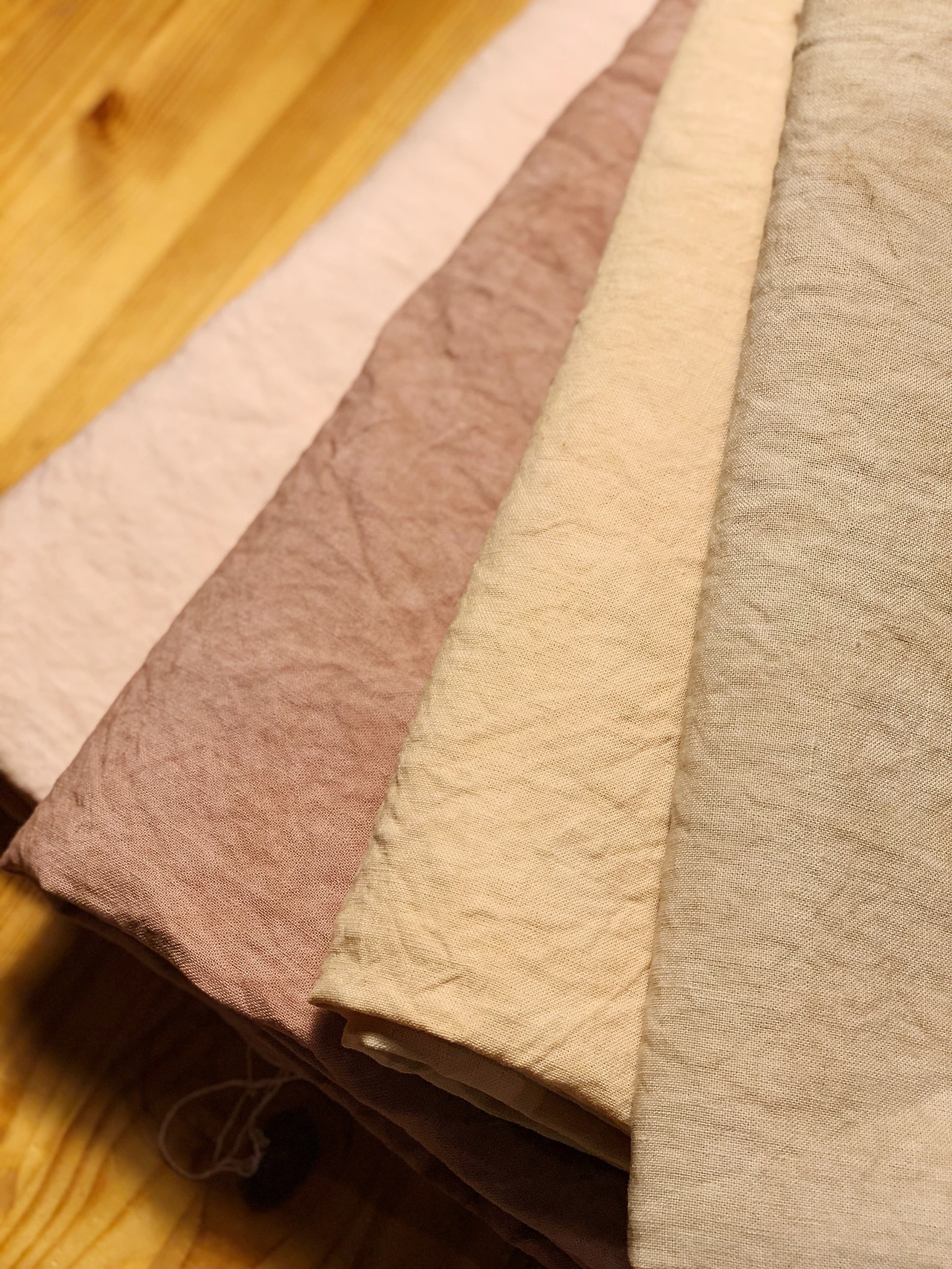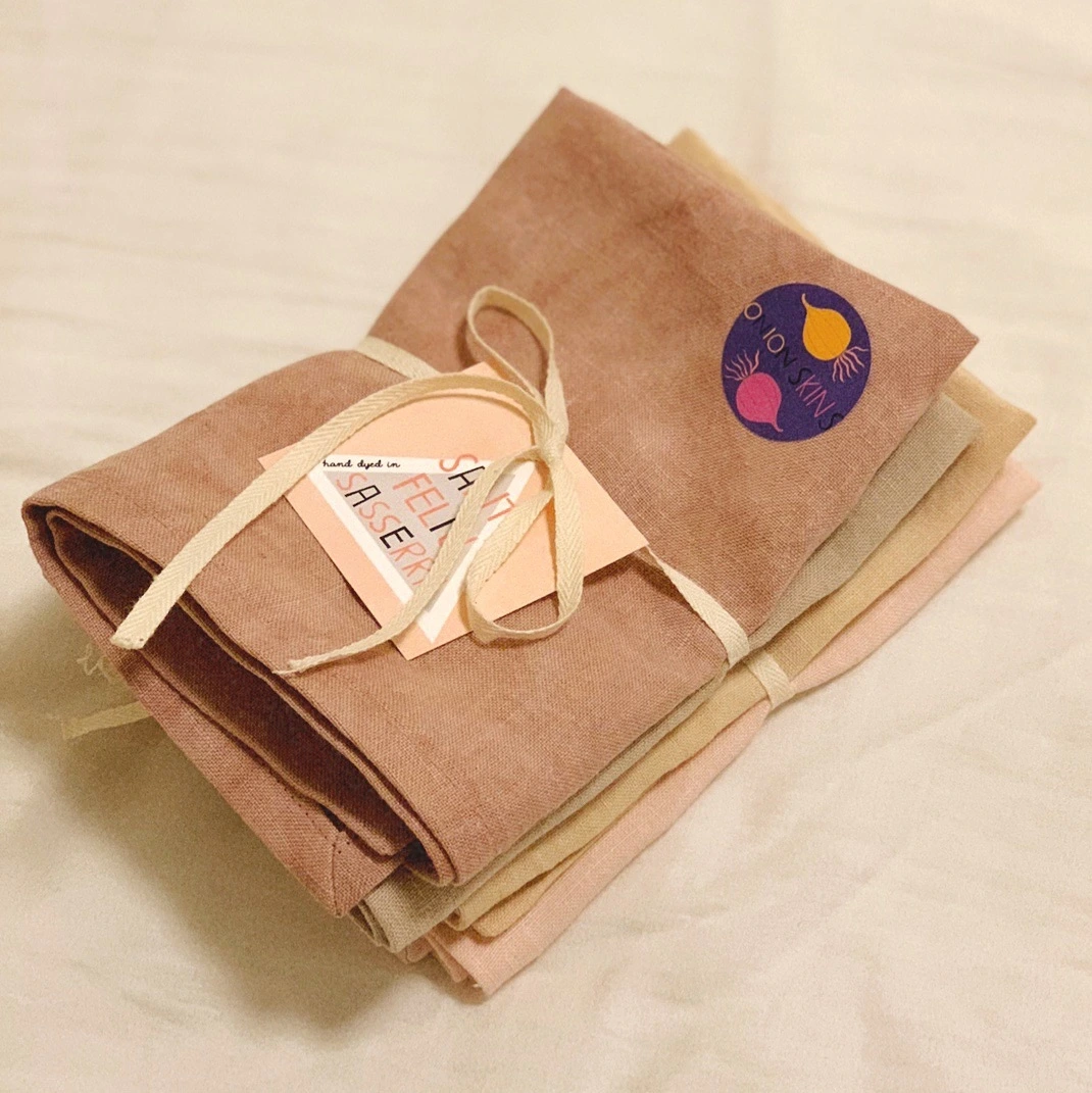 대충 다리미질을 하고 곱게 접어 집에 갈 준비! 왼쪽부터: 꼭두서니, 양파, 아보카도, 호두