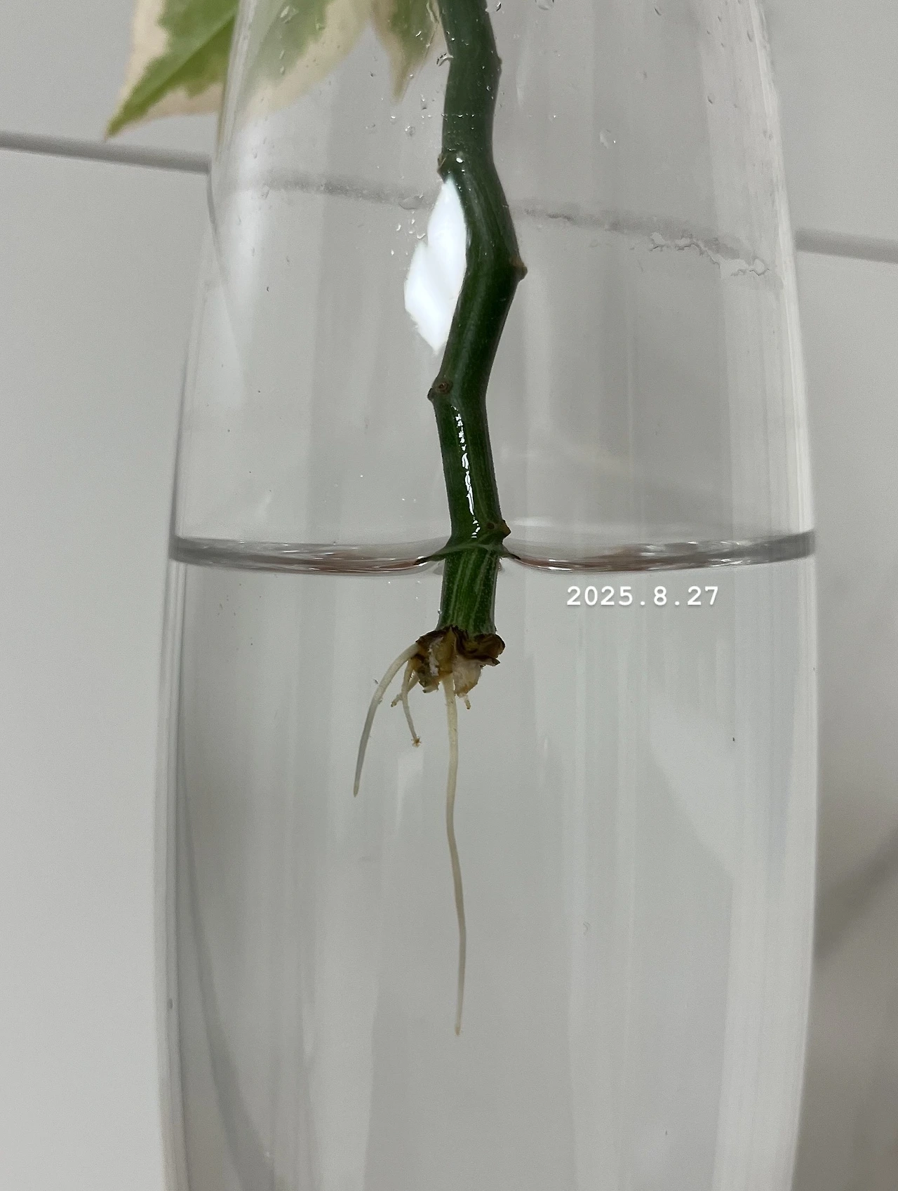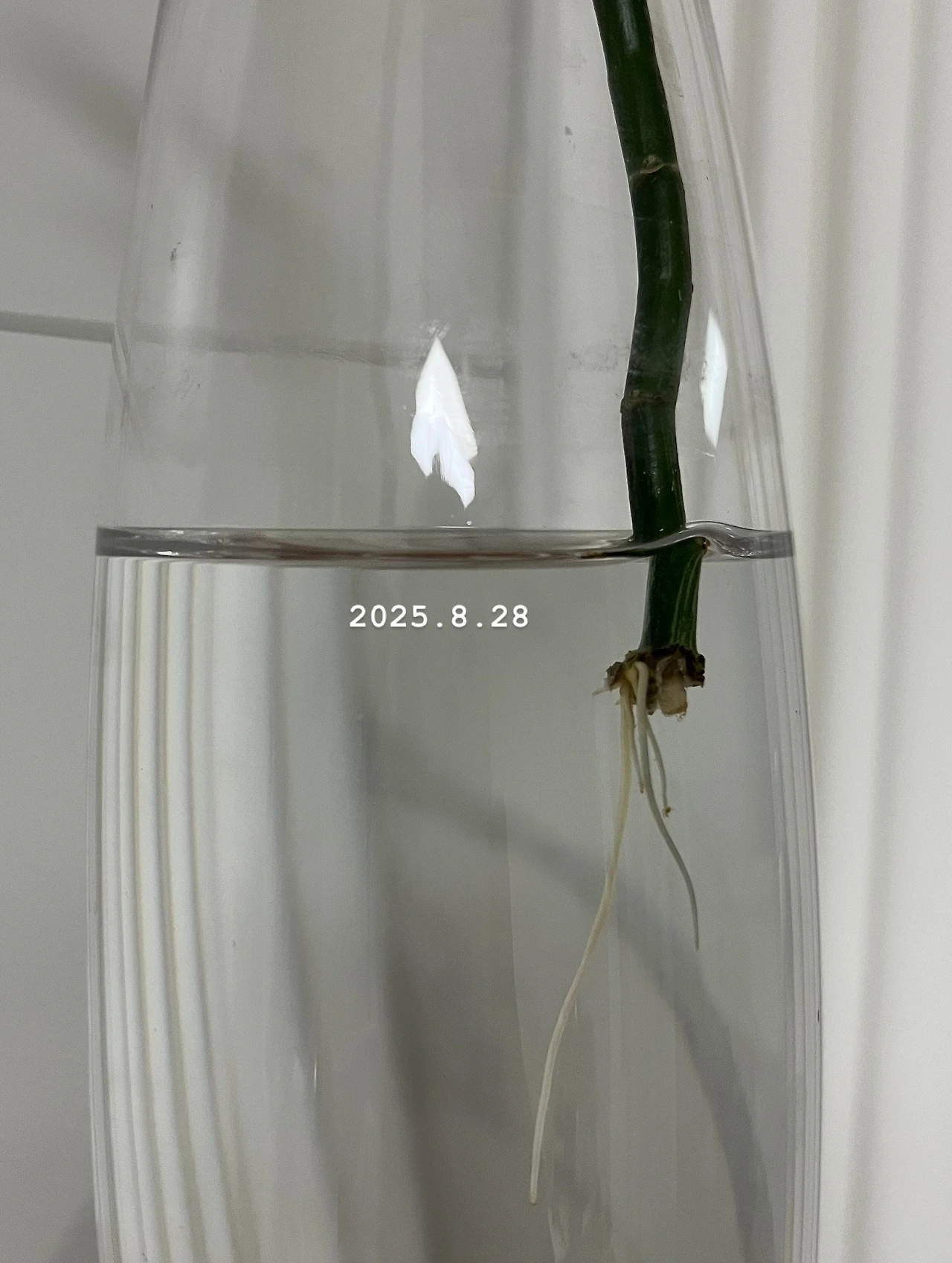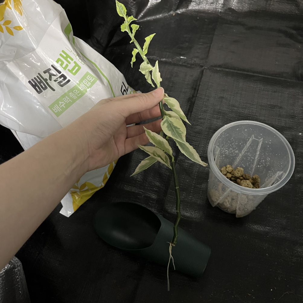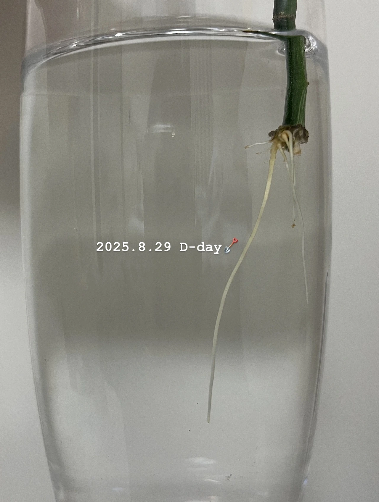 흙에 심기 전 물에 꽂아 뿌리를 생장시켰다