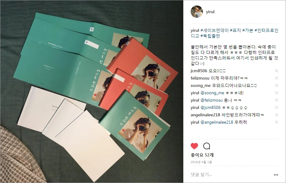 일기를 모았지만 페이지마다 사진이 포함된 책이라 색감이 매우 중요했는데, 인쇄소에 여러 번 문의하고 또 알아본 결과 '감리 신청'이라는 서비스가 있었다. (인터프로는 10,000원 이하) 미리 테스트로 뽑으며 종이 종류 등을 결정하고 마지막으로 뽑기 전에 감리 신청을 하면서 색과 종이에 대한 문제는 어느 정도 해결할 수 있다.