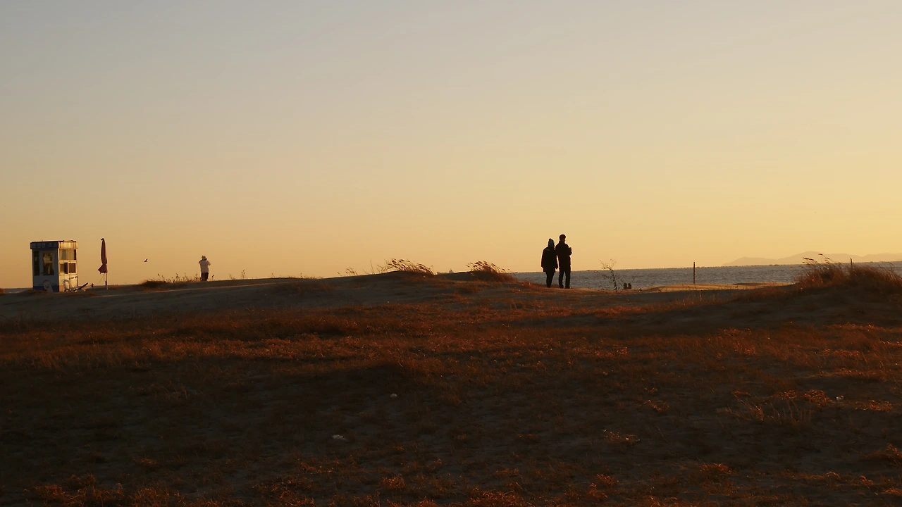 다대포에서 일몰을 본다는건 사실 가덕도의 그늘을 그림자를 봄에 다름 아니다. 다대포의 수려한 노을 풍경을 만드는데는 넓은 사막과 같은 백사와 너른 습지와 뻘, 강과 바다가 만나는 역동성도 있지만 기가 막히게 해 지는 방향에 아름드리 누운 가덕도의-그 섬과 산들이 만드는 실루앳이 존재한다. 서녘으로 뉘엇뉘엇 떨어지는 해를 가리는 섬인 동시에 해가 더 넘어갈수록 두드러지는 섬의 그림자. 낮엔 보이지 않는, 희미한 존재가 미네르바의 부앙이 마냥 해질녘에야 우리에게 도드라져 보인다.