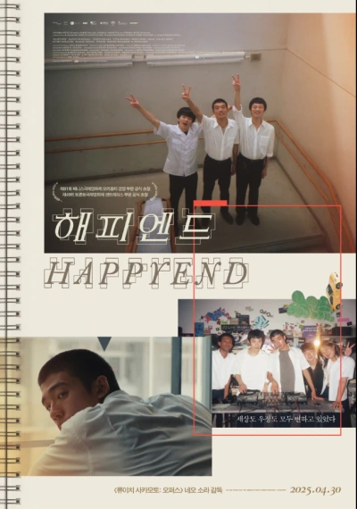 <해피엔드>는 레이와 시대의 연장에서 근미래를 살아가는 다섯 친구의 이야기다. 아 조금 더 정확히는 유타와 코우 그리고 교장이나 교사로 표상되는 국가 권력과의 관계에 관한 이야기다. 음악을 사랑하는 ‘순혈’ 일본인 유타, 재일조선인 4세 코우, 대만과 일본 혼혈인 밍, 미국과 일본 혼혈인 톰, 이 친구들 사이의 분위기 메이커인 아타, 이 다섯은 출신이나 배경, 피부색, 국적을 넘어 어린 시절부터 친구로 지낸 사이다. 이들의 우정이란 고3 어느날까진 어떤 동질성 위에서 유지됐다. 어린 시절 아마도 같은 유치원에서 만났다는 동질성은 이들이 처한 배경과 조건의 차이보다 더 강하게 이들의 우정을 지탱했다. 그러나 이 동질성의 우정은 어느날 단층을 맞는다.