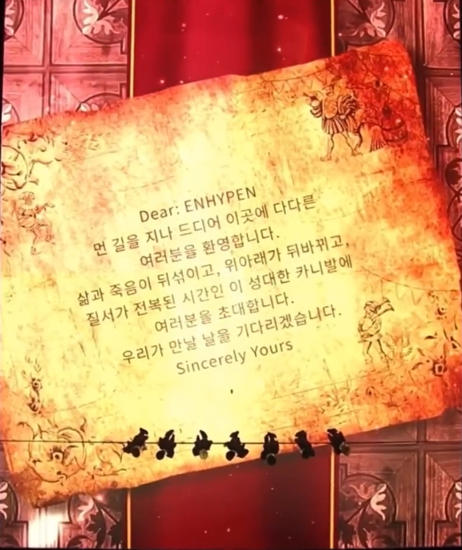 그들의 이야기는 어떤 것일까? 그들의 세계관이 궁금해졌다. 그래서 위버스 매거진에서 엔하이픈을 검색해 보았더니, 셰익스피어의 작품을 많이 차용했다고 나오네.. 글쎄 뭔가 고전적인 느낌이 난다 했더니, 역시나 빅히트는 배운 변태다. 그리고 앨범 커버는 한 줄의 경계선이라고 함. 경계선을 넘어 다른 세상에 들어서면서 모험담이 펼쳐질 것으로 보인다.