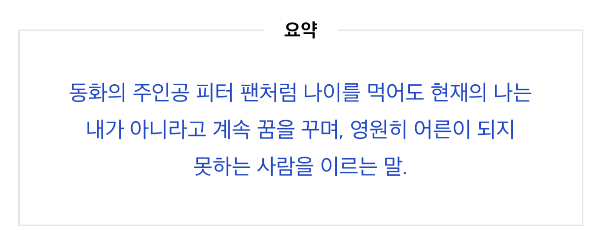 또 하나, 윤기는 본인을 “아직도 꿈에서 깨지 못하는 피터팬”이라고 표현했는데, 나는 피터팬이 누군지 몰라서 검색해봤다.