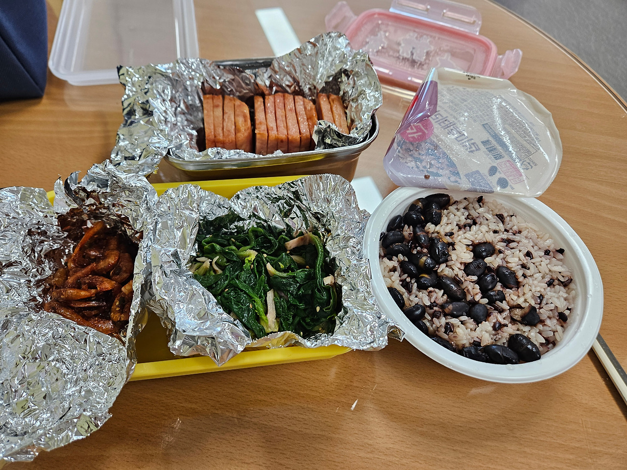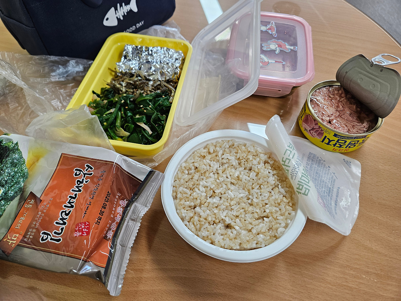 그래서 주말에 친정에 가서 밑반찬(시금치나물, 새우볶음 등)을 일주일 분량으로 얻어와 도시락을 싸기 시작했다.