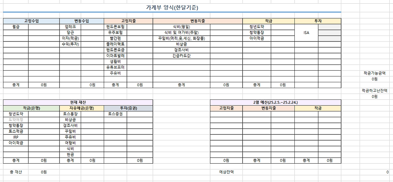 급하게 만들어서 쓰느라 조금 허접하지만 매달 쓰면서 필요한 부분을 보완해나갈 예정이다.