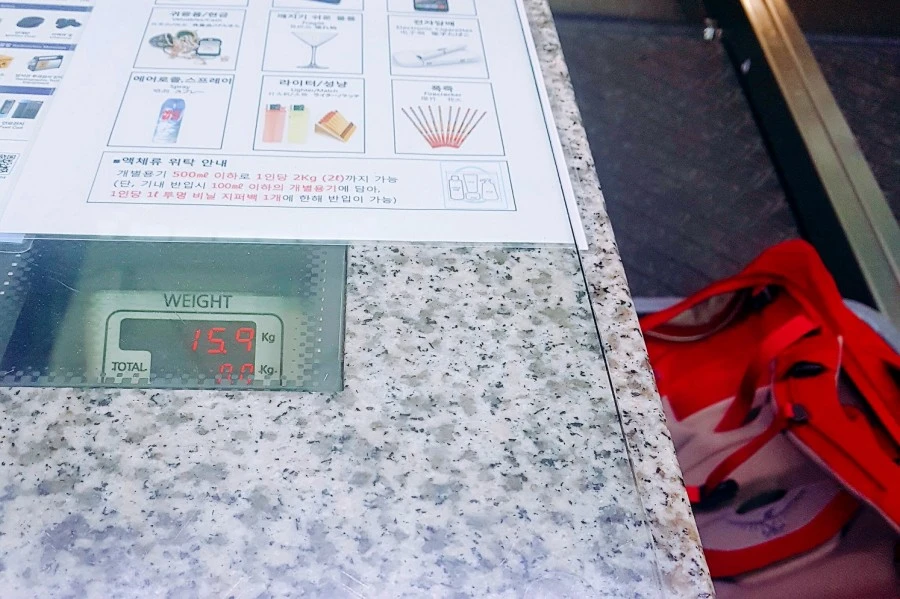이렇게 큰 배낭을 가지고 떠나는 것도 처음이고 위탁 수하물 맡기는 것도 처음이라 모든 게 어리둥절했다. 호신용 스프레이와 맥가이버 칼이 진짜 통과가 될까 궁금했는데 호신용 스프레이는 용량이 작은 것이라 괜찮고 맥가이버 칼도 통과 가능하다고! 예쓰!