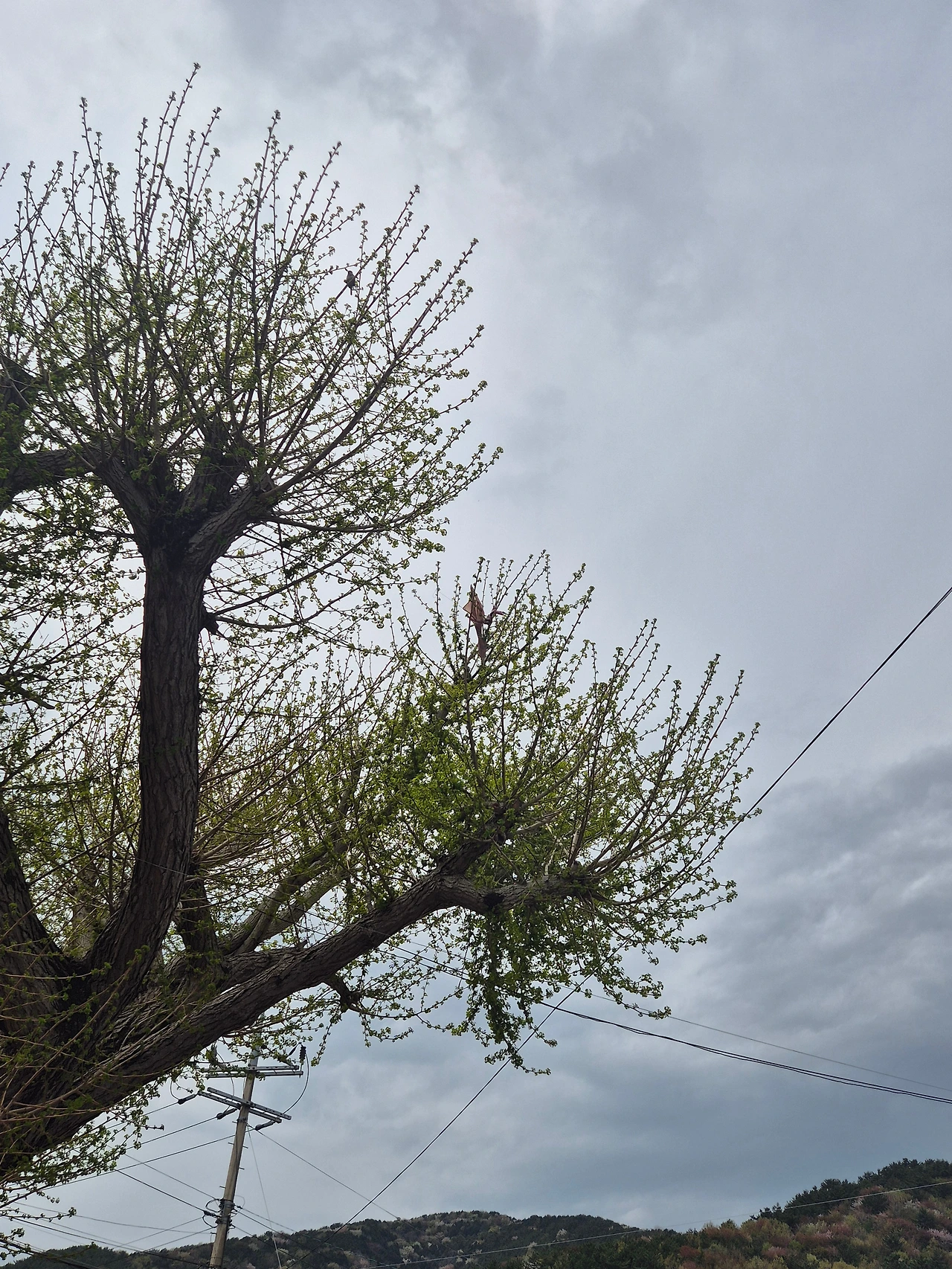 나뭇가지에 걸린 작은 연 하나를 보았다.
