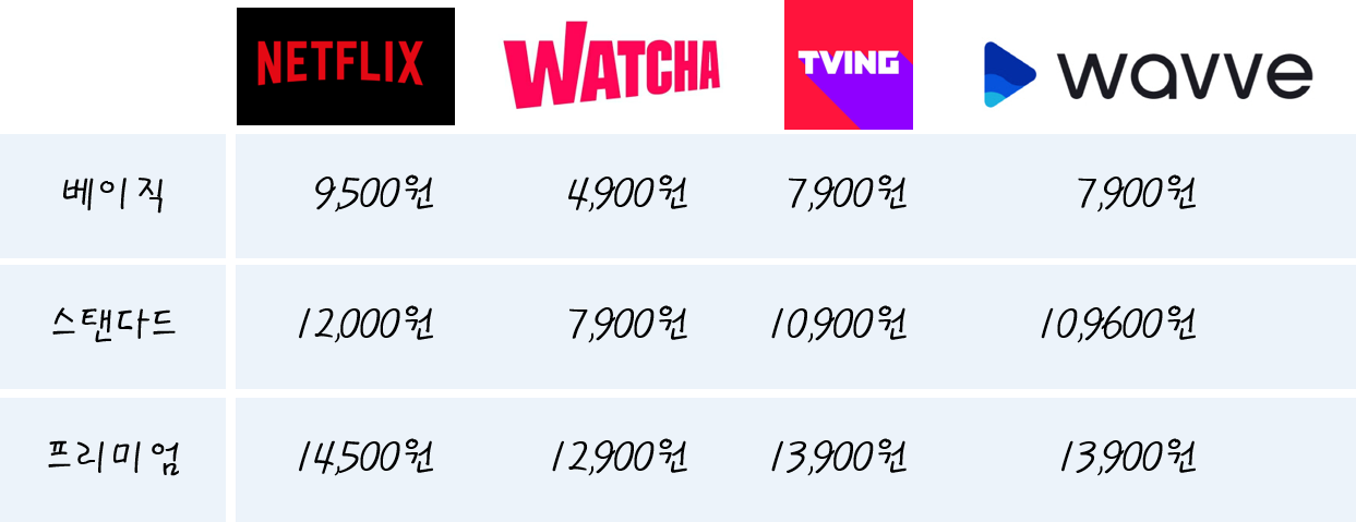 국내 OTT서비스 이용료-'21년 하반기 기준(@yjchoi35)