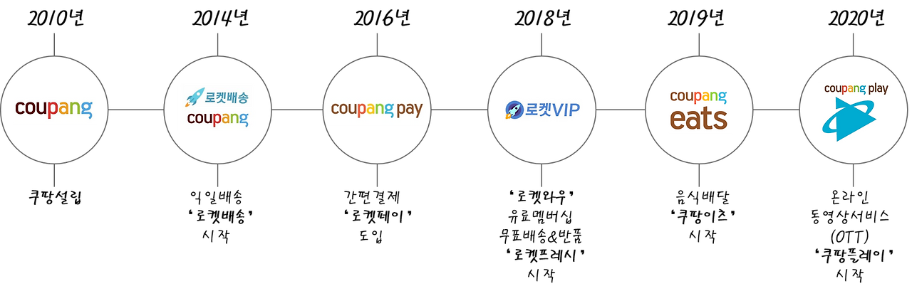 쿠팡은 2010년에 설립되어, '14년에 로켓배송 국내 최초 도입, '16년 로켓페이 도입, '18년 로켓와우서비스 시작, '19년 쿠팡이츠 시작, '20년 쿠팡플레이까지 新사업모델을 확장하고 있습니다. 물론 사업모델의 확장 대비 적자 실적을 내고 있어, 흑자전환에 대한 기대가 엇갈리고 있는 상황입니다. 어쨌든 설립 이래, 10여 년 동안 다양한 사업모델을 발굴하고, 국내 최초의 타이틀을 갖고 있다는 점에서 역시 '쿠팡플레이'에 기대감도 높습니다.