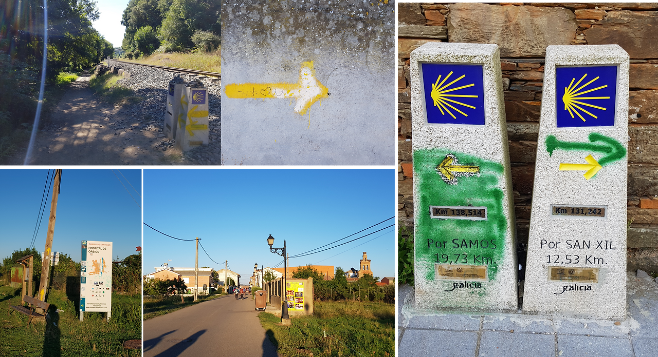 산티아고를 걸을때 '노란색 화살표'를 따라서 걸으면 된다. 나침판이다. 조금이라도 한적한 길에서 노란색 화살표가 나오지 않으면 걱정이 된다. 혹여 길을 잃었을까봐.