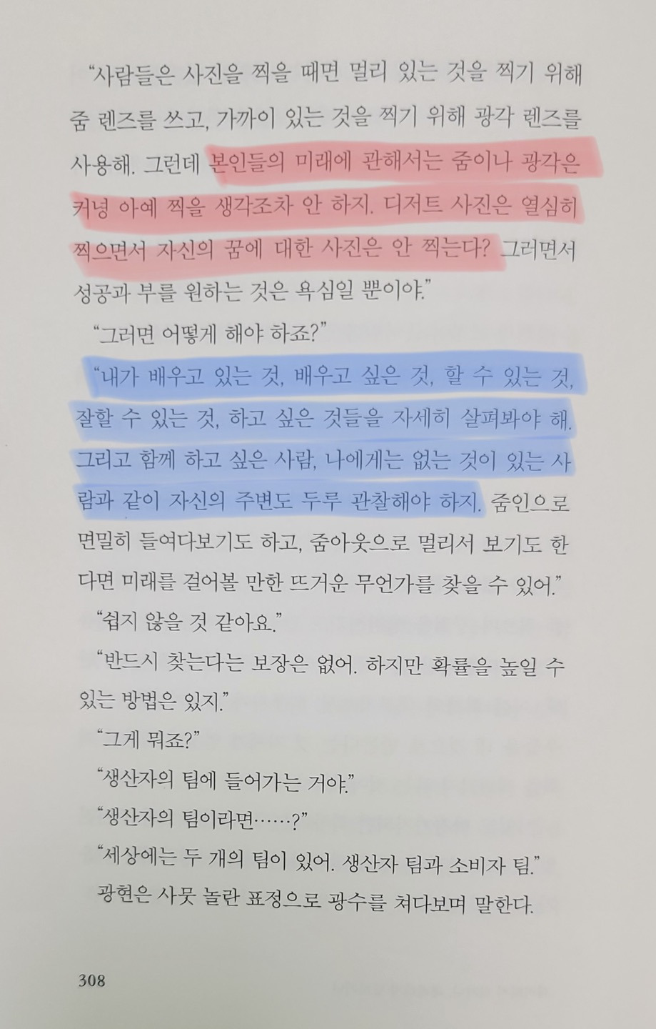 원하는 자유를 얻기 위해서는 '생산적 레버리지'가 필요하다는 것이다. 지금 당장, 오늘 닥친 현실에 충실해야 하지만 거기에서 나아가 '자신의 미래에 대해 들여다보고 무언가를 찾아야 한다는 것'이다. 그렇다. 하루에 적어도 1번 이상은 핸드폰 카메라를 켜고 무언가를 찍는다. 나의 미래는? 늘 '무언가를 해야지'라고 생각은 하지만 쉽게 실행으로 이어지거나, 또 시작은 했어도 피곤하다. 업무가 바쁘다 등 이런저런 핑계로 끝을 보기는 어려운 것이 현실이다.