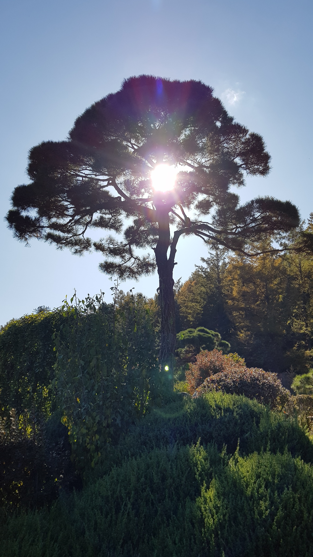 우뚝 솟은 소나무에 걸쳐진 햇빛, 나름 맘에 드는 사진