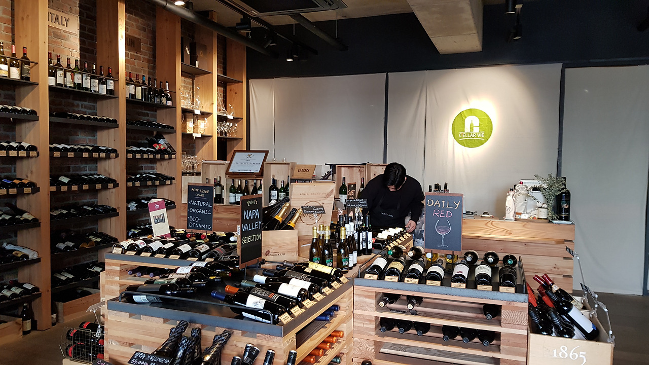 1층 커피 매장 입구에 와인 매장을 둘러볼 수 있다.
