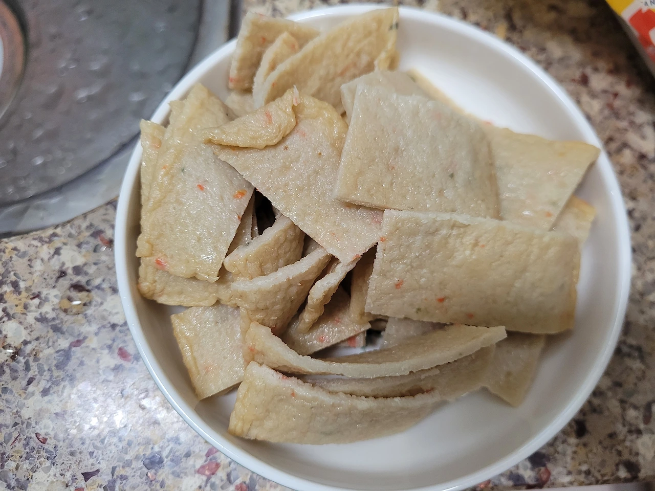 양념: 고추장 1, 고춧가루 3, 후추 톡톡톡(3번), 물 2컵(종이컵), 설탕 2, 카렛가루 1.5, 다시다 1, 물엿 1