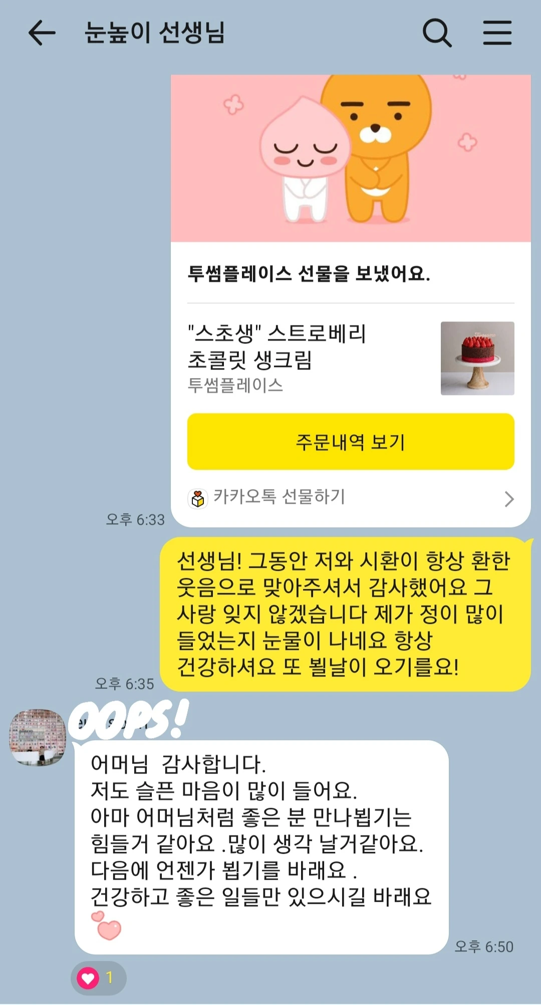 "그동안 정말 감사했습니다. 선생님"