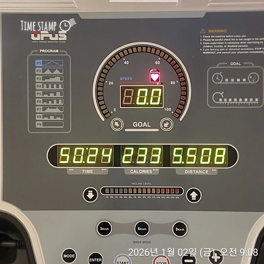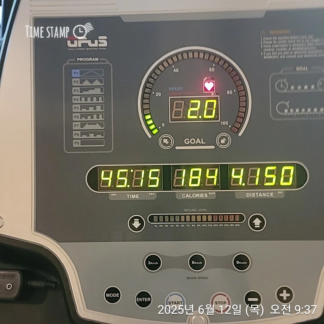 40분을 뛰고 앞뒤로 5분씩 걷기까지 포함하면 50분을 러닝머신 위에서 보낸다.