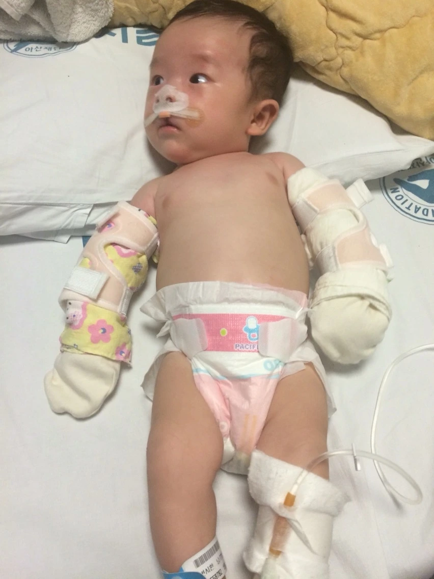 이 작은 아이 몸에 얼마나 많은 주사들을 꽂아야 하고 피를 뽑아야 할까.