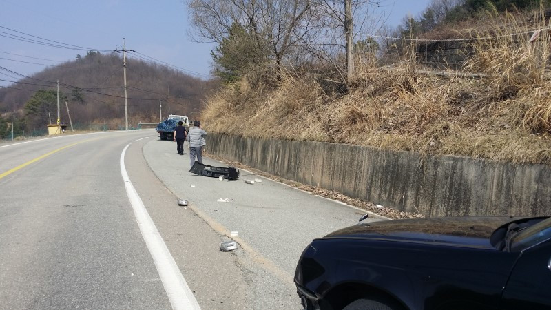 2~3Km쯤 갔을까? 전방에 나타난 도로 표지판에 직진 방향으로 공주역이 표시되어 있었다. ‘이런! 길을 잘못 들었구나!’하는 생각을 하며 차선을 바꾸려는 순간 마치 유령처럼 트럭 한 대가 스치듯 지나갔다. 그리고 슬로비디오처럼 차 앞으로 범퍼가 튕겨져 나가는 모습이 보였다.