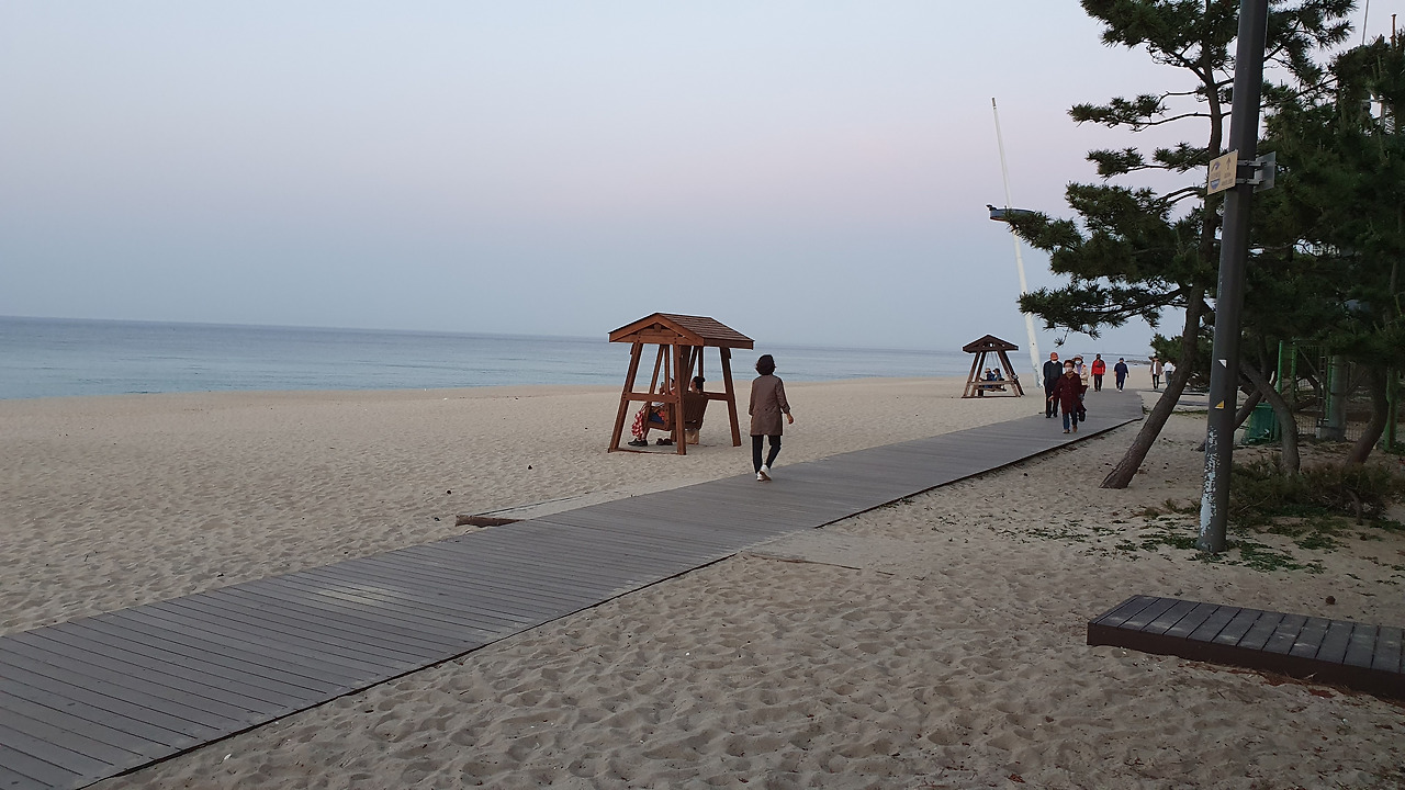 다음날. 경포호를 걸었다. 호숫가에 있는 방해정, 경호정 그리고 금란정을 지나며 경포호와 절묘하게 어우러진 곳에 살포시 집을 앉힌 옛사람들의 풍류에 절로 감탄이 나왔다. 그 집들은 하나같이 ‘어서 와!’ 하며 나를 향해 손짓을 하는 듯했다. ‘아예 강릉으로 이사할까?’ 하며 커피 한 잔을 사들고 경포대에 올랐다. 정자에는 이미 많은 사람들이 배를 깔거나 등을 대고 편하게 누워있었다. 그 틈에 처음부터 그랬던 것처럼 슬그머니 끼어 망연히 경포호를 바라보았다. 하루 온종일 바라보아도 질리지 않을 풍경에 취해 주변을 둘러보니 정자 뒤쪽으로 야트막한 산을 휘감아 도는 길이 보였다. 강원도 곳곳에 조성해 놓은 바우길 가운데 11구간이었다. 끌리듯 길에 올랐다. 갈림길에는 어김없이 안내 표지판이 세워져 있는데 신사임당의 대표작인 사친(思親)을 써 놓은 것도 있었다.