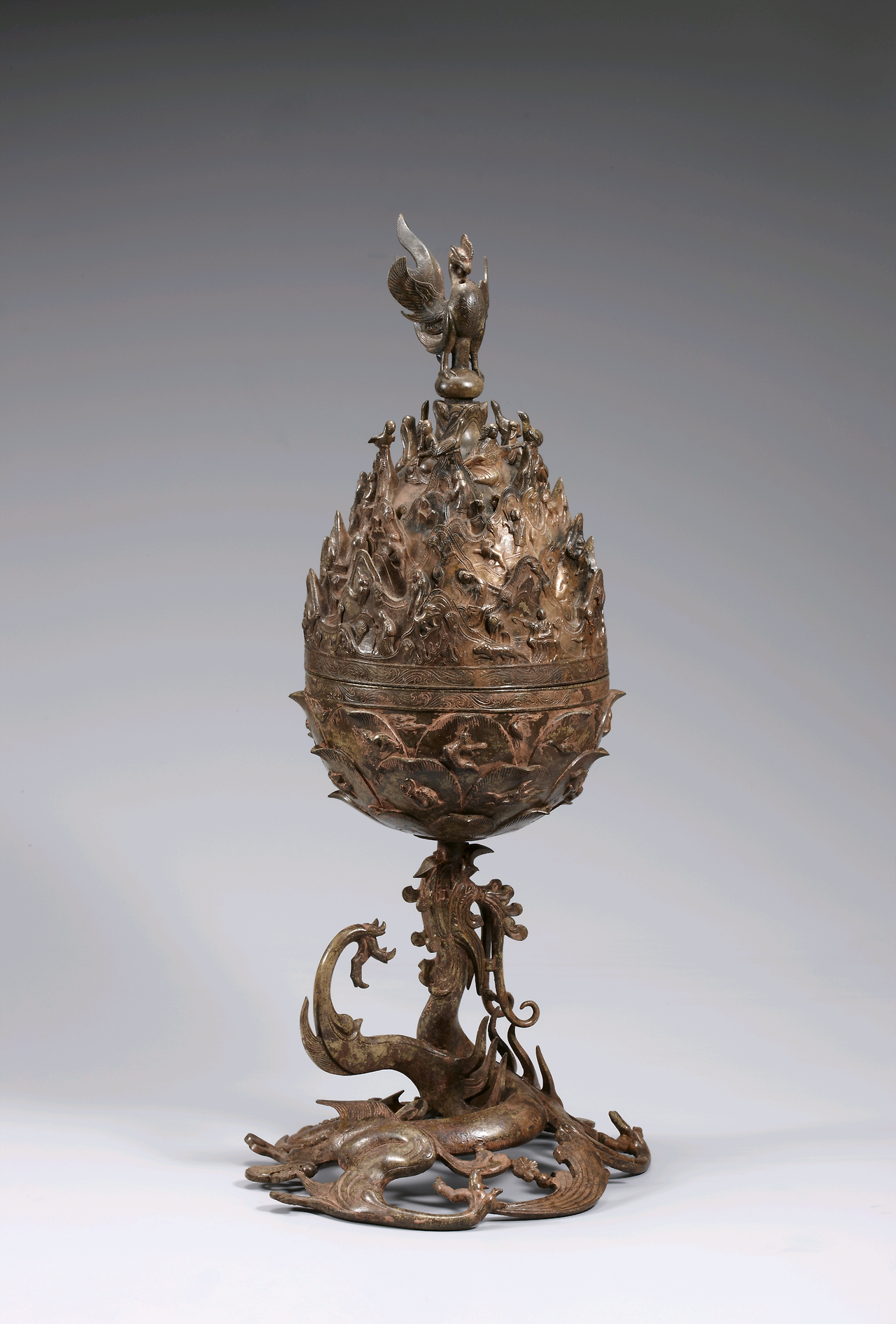 그들이 그토록 노심초사하여 발굴한 유물은 높이 64센티, 지름 20센티, 무게 11.85 Kg에 이르는 대형 향로였다. 유물을 확인한 발굴단은 처음엔 “이거 박산로(博山爐, 중국 한나라 때 향로) 아니야?”하고 탄성을 질렀다고 한다. 우리나라 조각사에서 기념비적 걸작으로 꼽히는 국보 287호, 국립중앙박물관이 선정한 ‘우리 유물 100선’에 선정된 금동대향로가 비로소 사람들에게 본모습을 보인 것이다.
