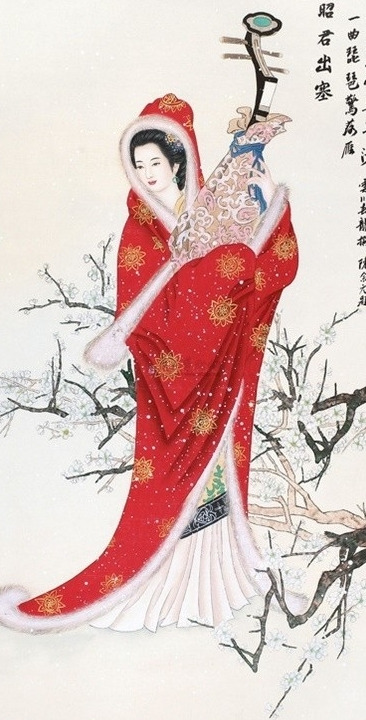 한나라 원제의 후궁이었던 왕소군은 흉노의 침공을 막기 위해 호한야선우의 후궁으로 보내졌다. 그녀는 호한야선우와의 사이에서 아들 하나를 낳았다. 그 뒤 호한야선우가 죽자 흉노의 풍습에 따라 왕위를 이은 아들에게 재가하여 두 딸을 낳았다. 맏이마저 죽자 왕소군은 아우와 혼인하여 70세가 넘도록 흉노 땅에서 살았다. 당나라 시인 동방규는 소군원(昭君怨)이라는 시에서 ‘오랑캐 땅에는 꽃과 풀이 없으니 봄이 와도 봄 같지 않구나. (胡地無花草, 春來不似春)’라며 고향을 그리는 왕소군의 심경을 노래했다. 이백도 소군원(昭君怨)이라는 시에서 ‘오늘은 한나라의 후궁인데 내일 아침이면 오랑캐 땅의 첩이라네(今日韓宮人 明朝胡地妾)’라며 왕소군의 고달픈 삶을 안타까워했다.