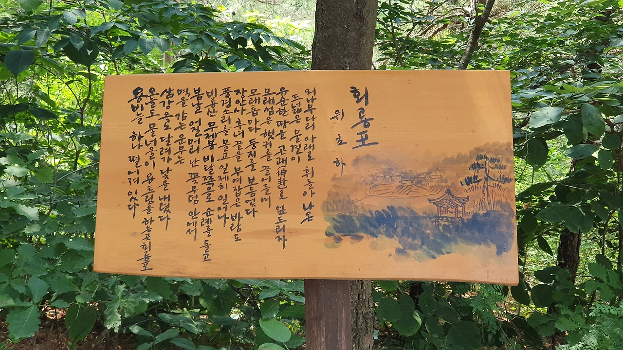 물돌이 마을의 막내는 예천 회룡포다. 최근 여러 가수가 부르고 있는 대중가요 ‘회룡포’를 모두 들으며 회룡포를 내려다볼 수 있는 회룡대로 향했다. 차 한 대가 겨우 지나갈 만한 아찔한 비룡산 산길을 굽이굽이 돌고, 오르락내리락하며 팔이 뻐근해질 때쯤 목적지에 도착했다. 맞은편에서 오는 차가 있었더라면 상당히 애를 먹을 뻔했지만 멋진 길이었다.
